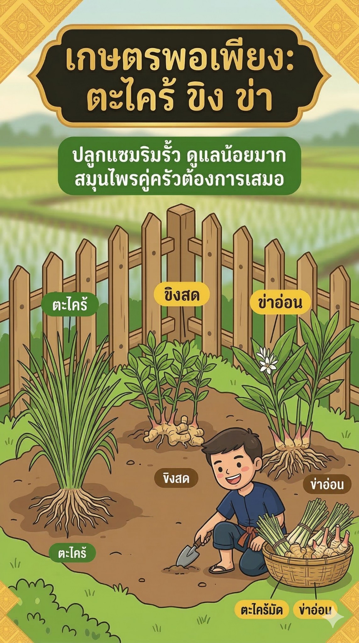 5. ตะไคร้ ขิง ข่า (The Fence Herbs):