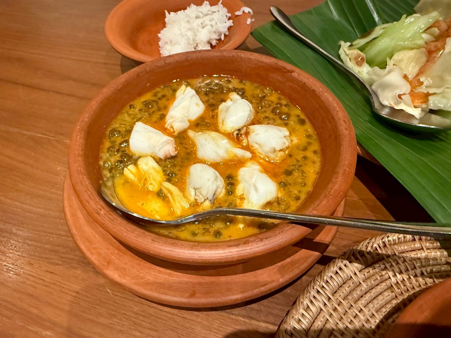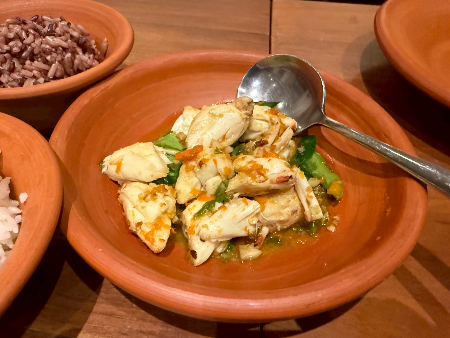 ใช้ปูม้าก้อน ส่วนขี้เหล็กใช้ดอกเป็นหลัก ไม่ค่อยมีใบ สำหรับคนชอบแกงขี้เหล็กโบราณอย่างผม รู้สึกรสชาติมันอ่อนไม่ค่อยเข็มข้น ไมมีรสชม ขาดความมันความหอมของปลาย่างกับ หมูสามชั้นทอด ที่คุ้นเคยได้เนื้อปูก้อนเพ่ิมความอร่อย แต่มันไม่เหมือนแกงขึ้เหล็ก แต่คนชอบ แกงอ่อนๆ อาจะชอบนะ ชามนี้ 520 แพงหน่อย เพราะว่า ใช้ปูก้อน