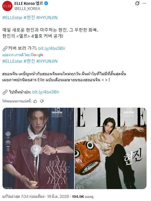 🔥 Stray Kids Hyunjin สวมเครื่องประดับของ CARTIER จะปรากฏบนปกของนิตยสาร ELLE Korea ฉบับเดือนเมษายน 2026