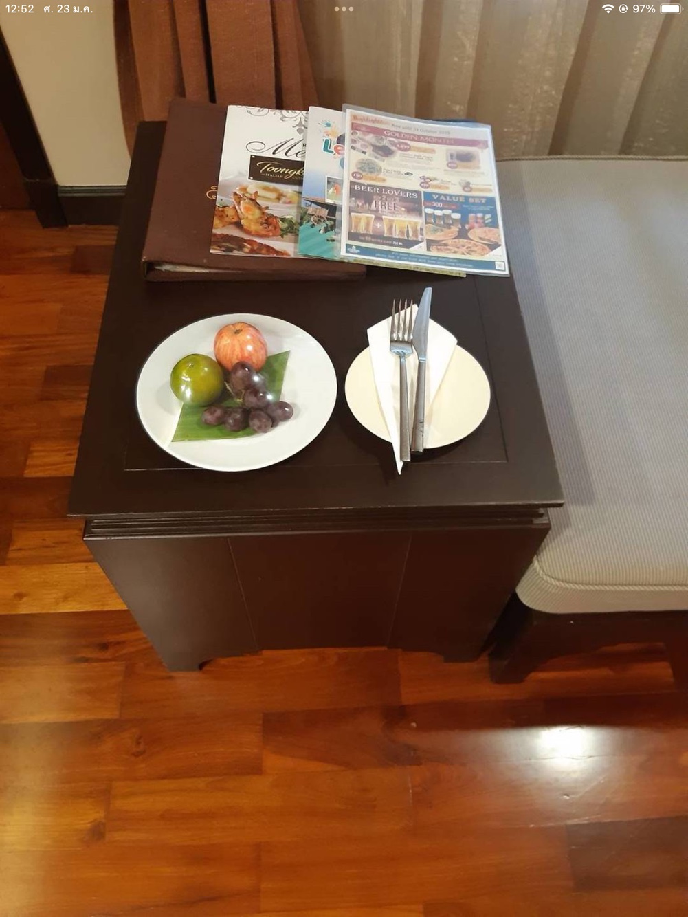 ในห้องพักมีผลไม้เอาไว้ต้อนรับให้ลูกค้าได้ทานฟรีๆ