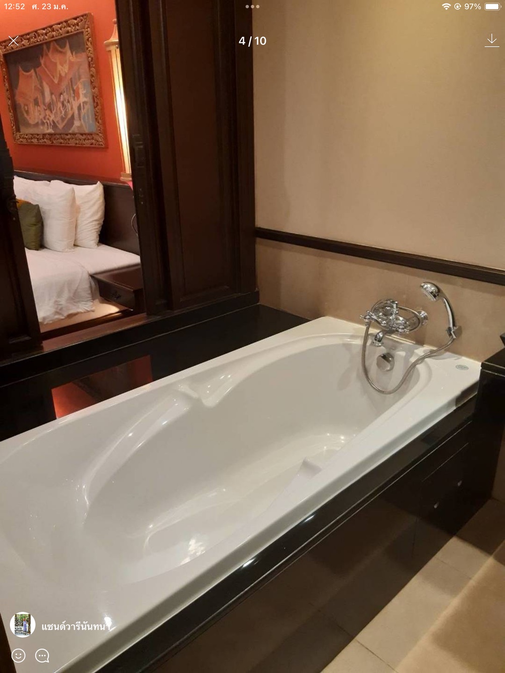 เตียงนอนห้องน้ำมีอ่างอาบน้ำที่สะอาดเรียบร้อย บนเตียงมีหนังสือให้ผู้เข้าพักอ่านคลายเครียดด้วยค่ะ