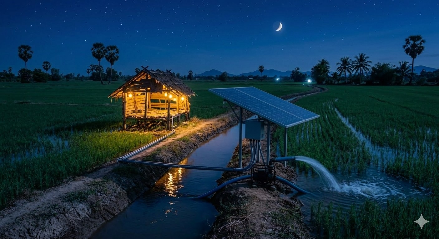 ความสะดวกสบายและการเข้าถึง: ระบบออฟกริด (Off-Grid) หรือระบบที่มีแบตเตอรี่กักเก็บพลังงาน ช่วยให้เกษตรกรสามารถมีไฟฟ้าใช้สำหรับการทำงานหลัก เช่น การสูบน้ำ หรือแม้กระทั่งแสงสว่างในเถียงนา (ดังที่เห็นในภาพ image_2.png) ในพื้นที่ห่างไกลที่สายส่งของการไฟฟ้ายังเข้าไม่ถึง