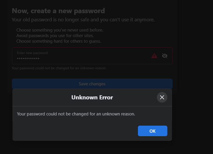 Facebook โดนล้อค ระบบขึ้นว่า Your password could not be changed for an unknown reason ต้องทำอย่างไรต่อไปหรอคะ