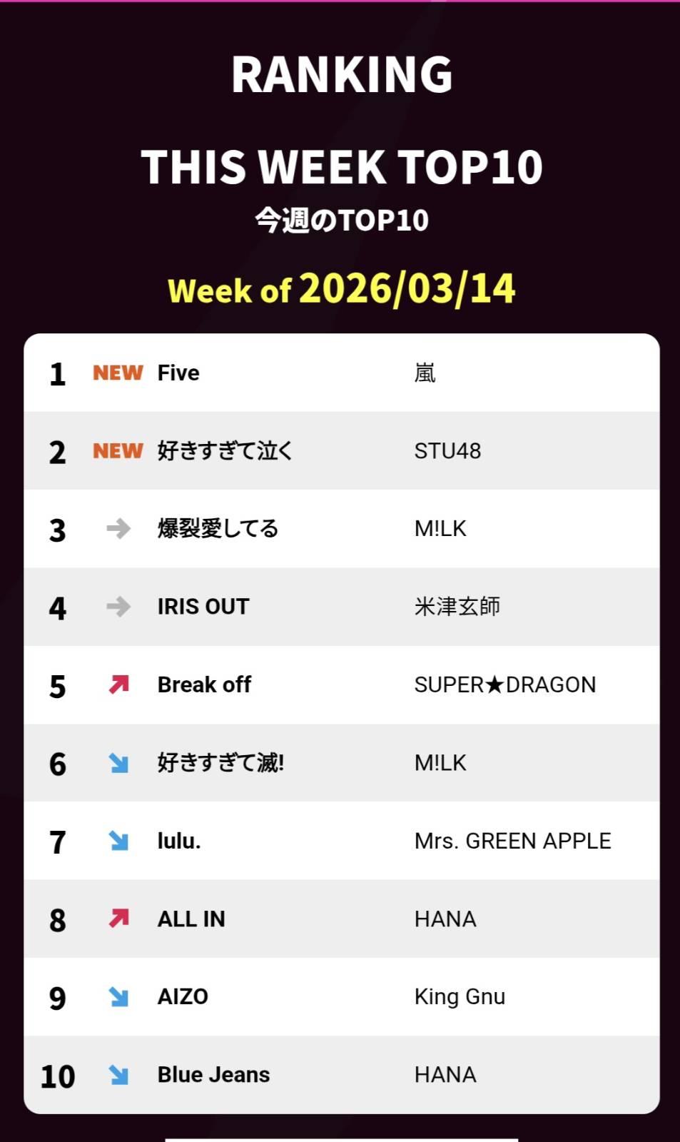 RANKING THIS WEEK TOP10 Week of 2026/03/14 CDTV Live! Live!