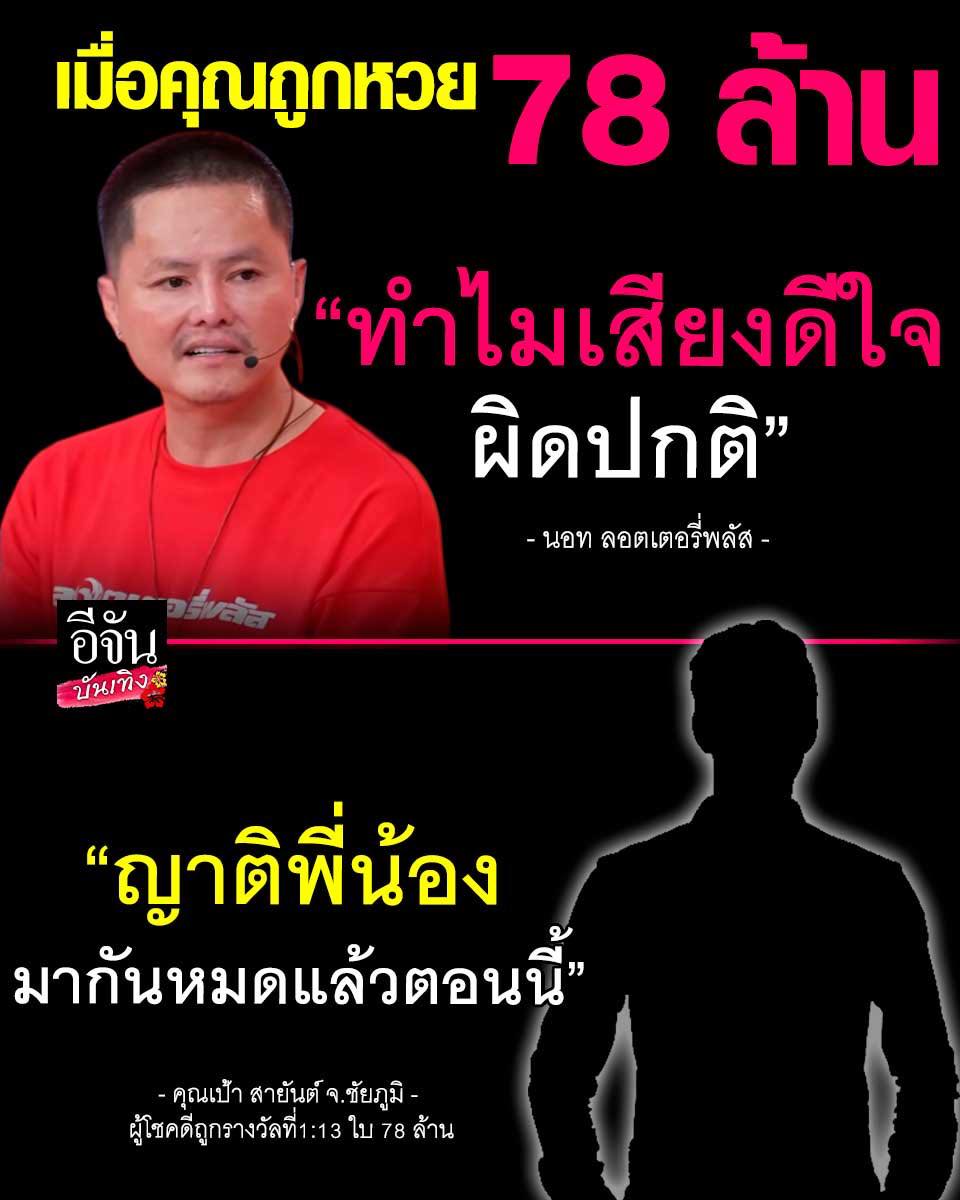 คุณถูกรางวัลที่หนึ่ง ยอดรวมแล้ว 78 ล้านบาทไทย