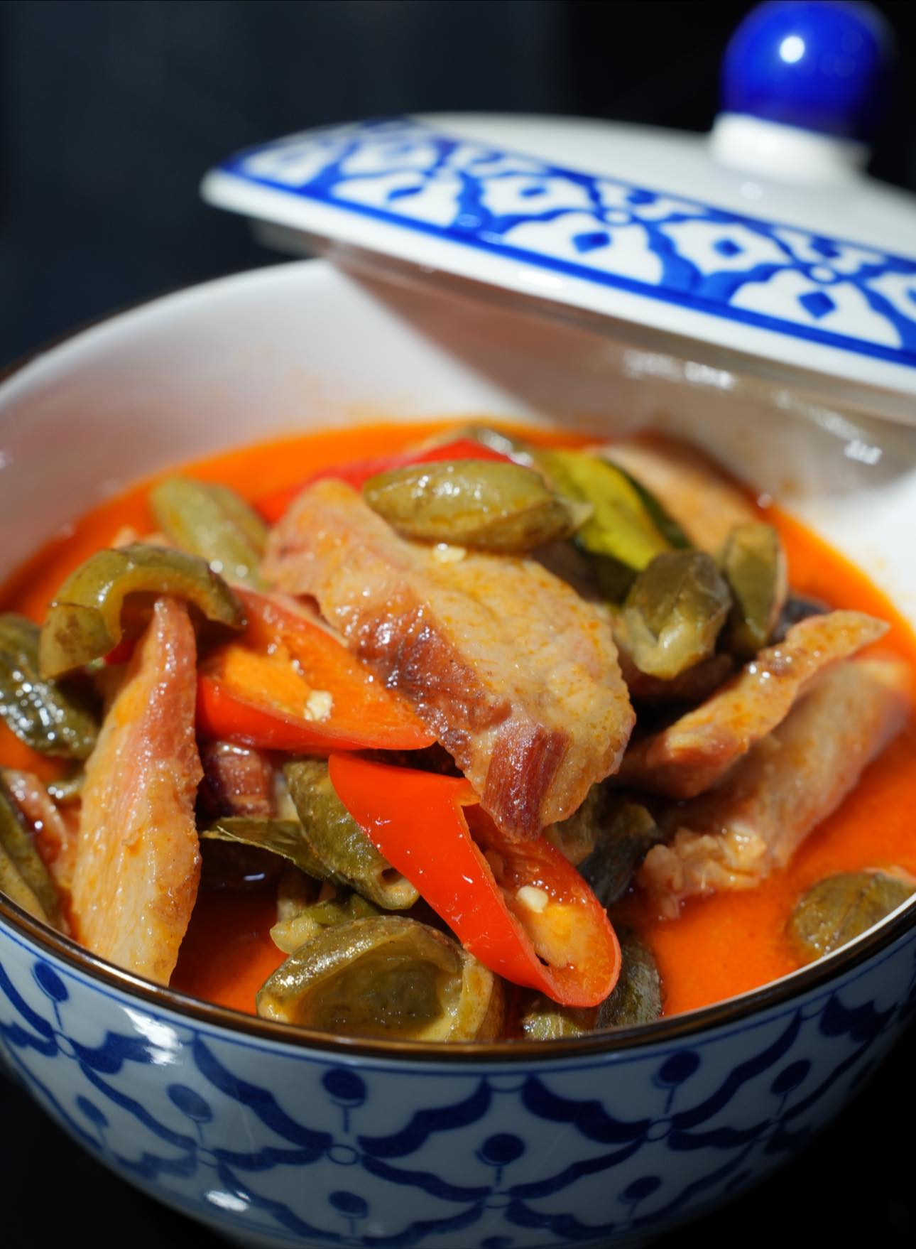 60. แกงกะทิ:)มคอหมูย่าง เชิญมาเที่ยวมากินอาหารอร่อยๆ จ.ตราด ; เมนูอาหารถิ่น ๗๗ จังหวัด 'รสชาติ…ที่หายไป' พ.ศ.๒๕๖๘