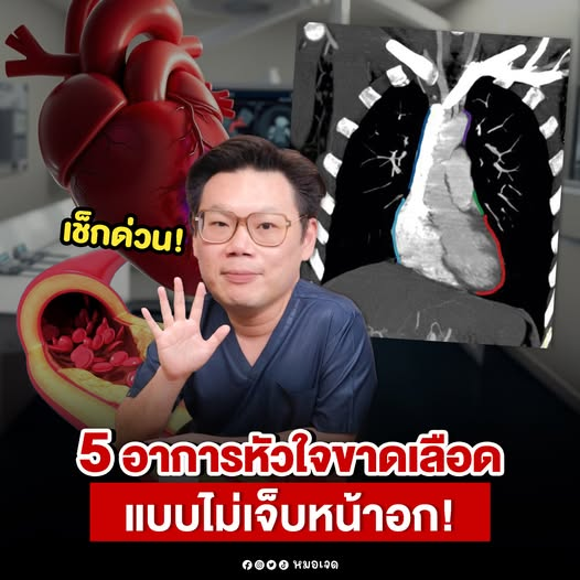 หลายคนเข้าใจว่า ถ้าเป็น หัวใจขาดเลือด ต้องมีอาการ เจ็บหน้าอกแน่น ๆ เหมือนมีอะไรทับอยู่ เท่านั้น แต่ความจริงแล้ว ผู้ป่วยจำนวนไม่น้อยเลยครับกลับ ไม่ได้เจ็บหน้าอกเลย ทำให้อาการถูกมองข้ามไปง่ายมาก โดยเฉพาะในผู้หญิง ผู้สูงอายุ และคนที่เป็นเบาหวาน อาการอาจออกมาแบบไม่ชัดเจน เช่น เหนื่อยง่าย จุกแน่น หรือปวดบริเวณอื่นแทนหน้าอก จนบางคนคิดว่าแค่กรดไหลย้อนหรือออฟฟิศซินโดรมได้นะ