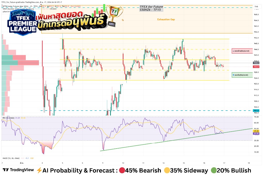 🔴 ขึ้นไม่ไหว! S50H26 พยายามขึ้นช่วงเช้า แต่บ่ายซึมตัวปิดโซนล่าง 932 (-3.2 จุด)