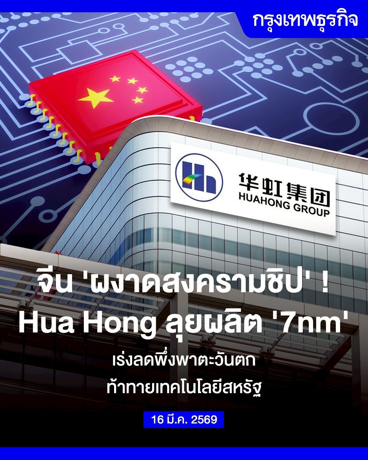 จีน ‘ผงาดสงครามชิป’ Hua Hong ลุยผลิต ‘7nm’ เร่งลดพึ่งพาตะวันตก ท้าทายเทคโนโลยีสหรัฐ