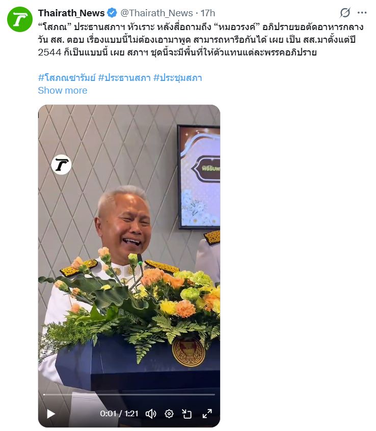 ตัดงบเลี้ยงอาหารสส.เป็นเรื่องตลก