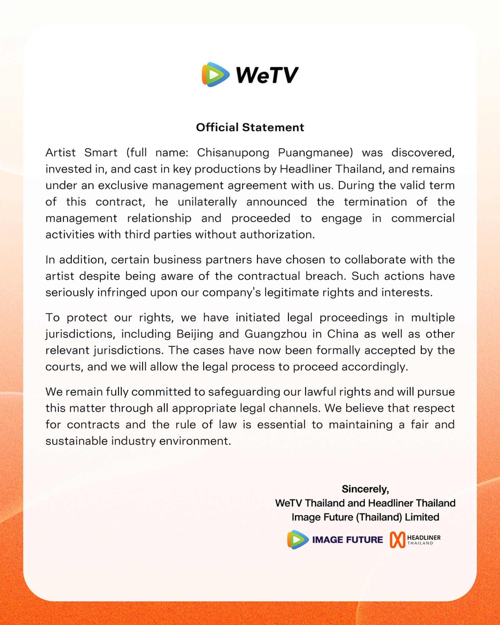 📣 Official การยกเลิกสัญญาบริหารร่วม กับนายชิษณุพงศ์ พวงมณี (“สมาร์ท”) และการสรุปกิจกรรมร่วม “สมาร์ท-บูม”