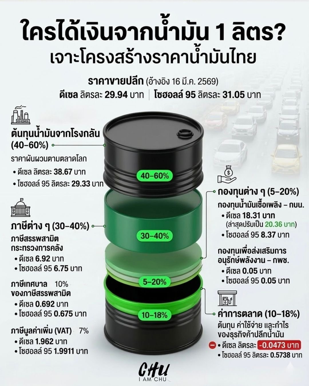 ราคาน้ำมัน 1 ลิตร เราจ่ายค่าอะไรไปบ้าง?