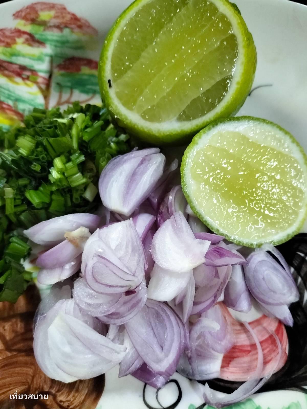 3 .โรยหน้าด้วยหอมแดงและผักชีฝรั่ง พร้อมเสิร์ฟ