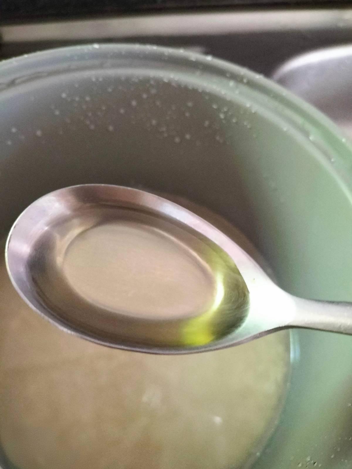 3. ใส่น้ำมันพืช และน้ำส้มสายชู อย่างละ 1 ช้อนชา