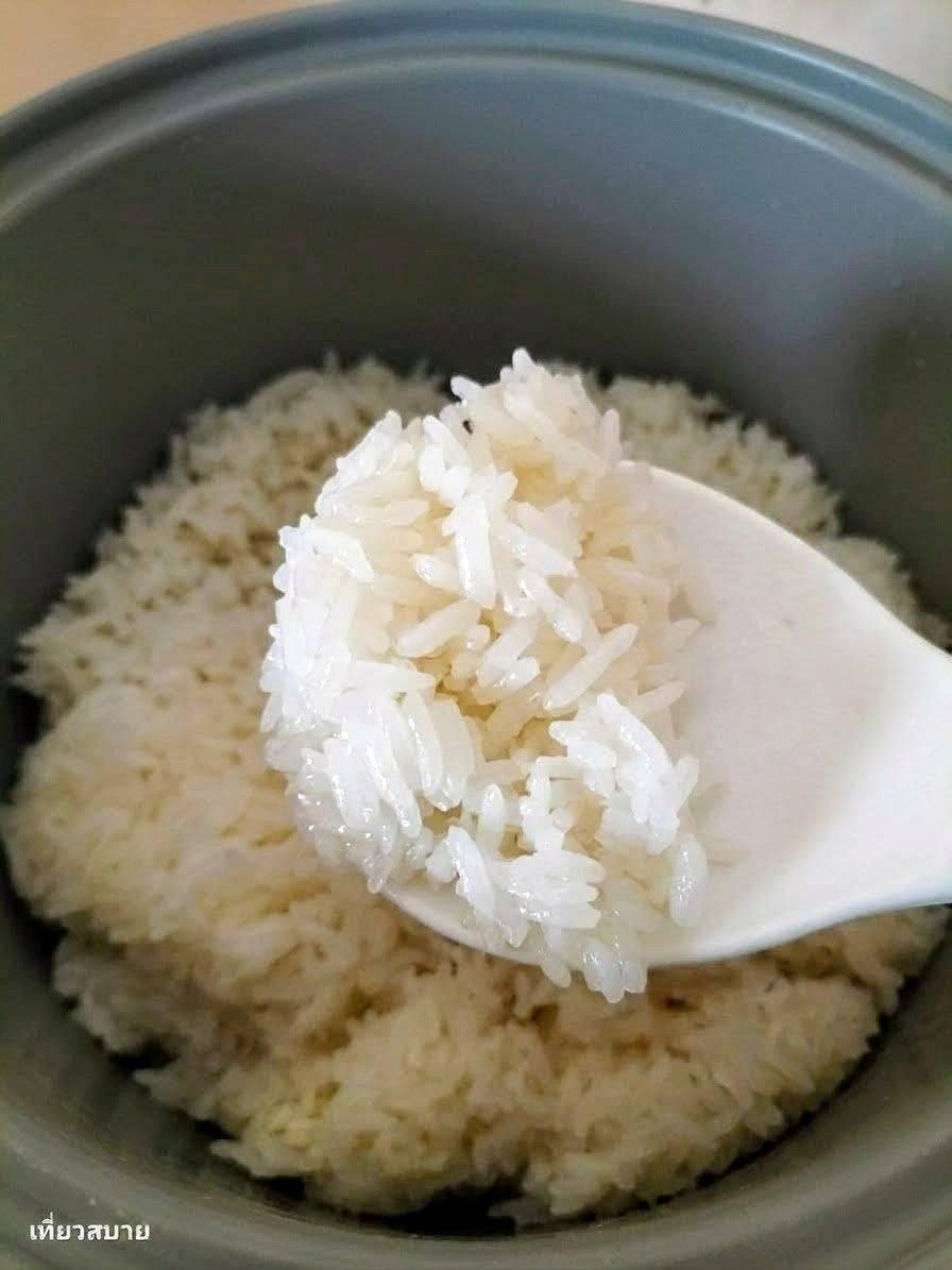 ใช้ทัพพีคนข้าวให้ระบายไอน้ำ