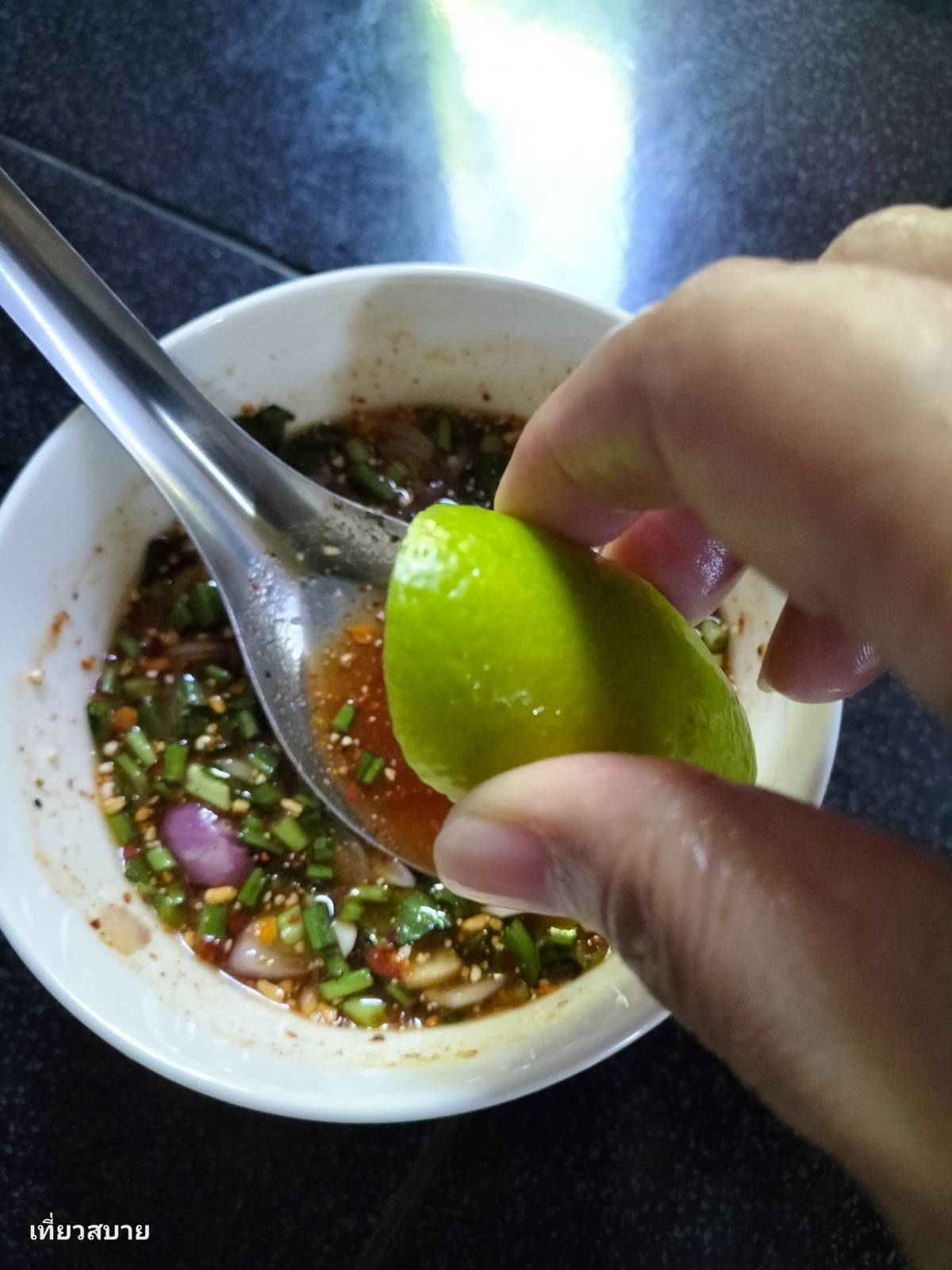 ชิมรสให้ได้ 3 รส เปรี้ยว เค็ม หวาน จากนั้นบีบมะนาวปิดท้าย เพื่อให้กลิ่นได้กลิ่นหอมของมะนาว และทำให้รสชาติ ของน้ำจิ้มแจ่ว "สว่าง" และแซ่บจี๊ดจ๊าดขึ้น