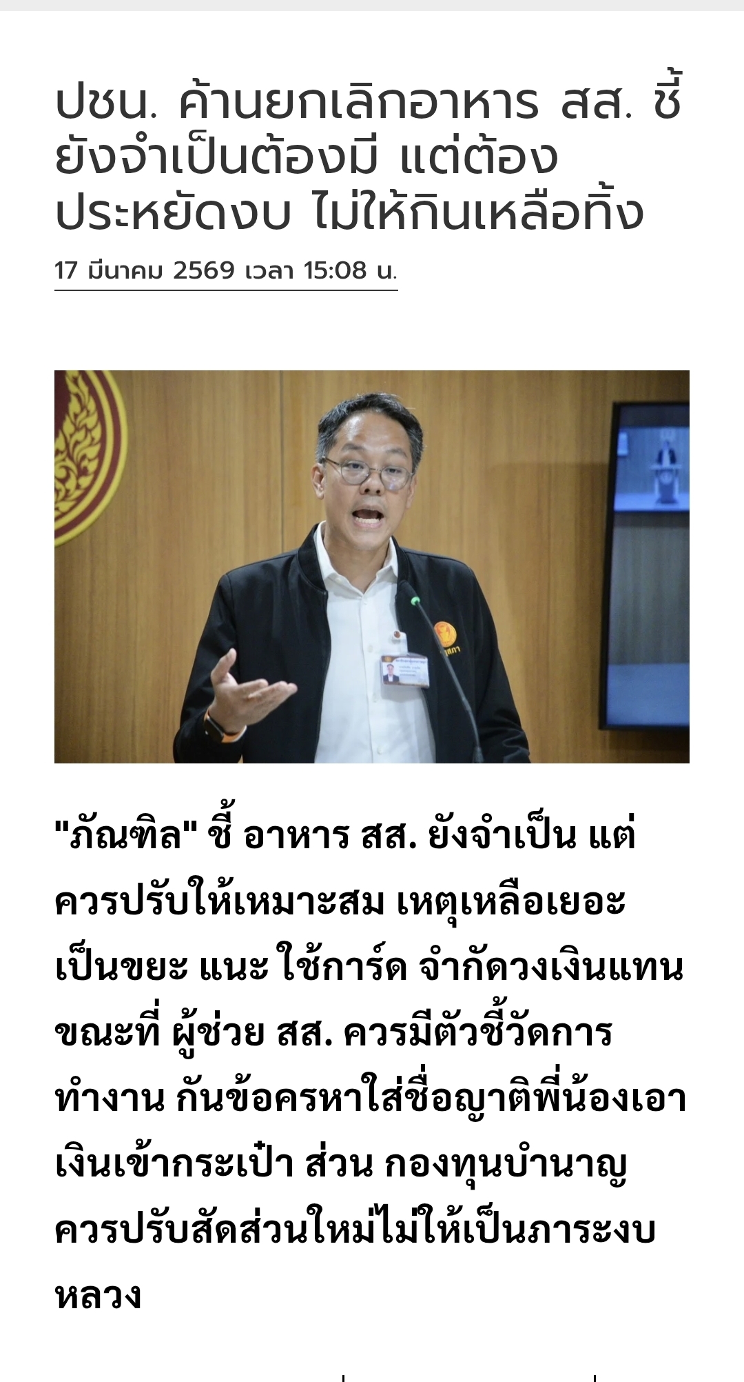 ในขณะที่ไอซ์ประกาศผ่านสื่อโชเชี่ยลว่าตนเคยพูดเรื่องตัดงบอาหารก่อนหมอวรงค์แต่ไม่ได้รับความสนใจ
