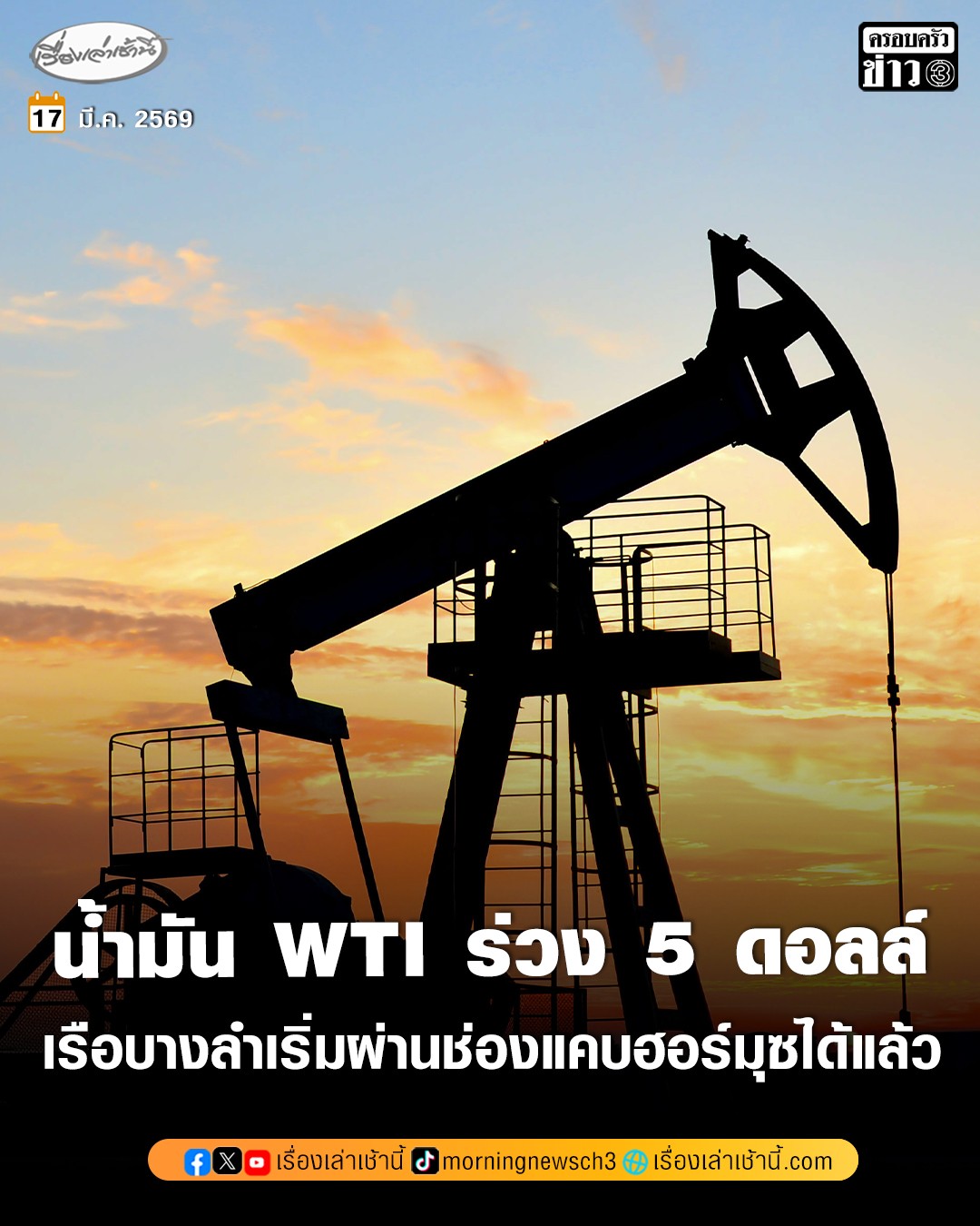 ราคาน้ำมันโลกร่วงในวันจันทร์ หลังเรือบางลำเริ่มแล่นผ่านช่องแคบฮอร์มุซได้แล้ว แม้ว่าพันธมิตรของสหรัฐฯ จะปฏิเสธคำเรียกร้องของประธานาธิบดีโดนัลด์ ทรัมป์ ที่ขอความช่วยเหลือในการเปิดช่องแคบ ขณะที่หัวหน้าองค์การพลังงานระหว่างประเทศ (IEA) แนะนำว่าอาจมีการปล่อยน้ำมันสำรองเพิ่มเติมเพื่อบรรเทาต้นทุนที่เพิ่มสูงขึ้นอันเนื่องมาจากสงครามอิหร่าน