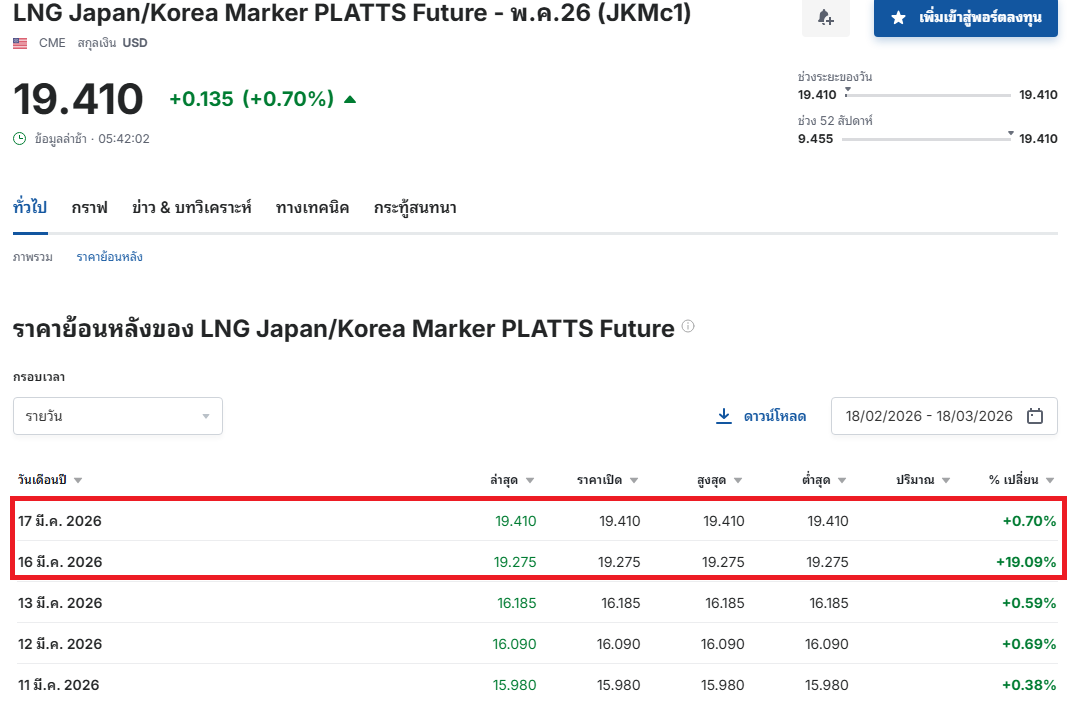 ก๊าซ LNG พุ่งสูงสุดในรอบ 3 ปี แค่ 1 เดือนพุ่ง 100% แพงที่สุดในสินทรัพย์สงครามอิหร่าน โรงไฟฟ้า ปูน กระดาษกระอัก แพงจนร้อง