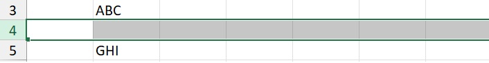 เราต้องการลบข้อมูลแถวที่ 4 เพื่อให้ข้อมูลของแถวที่ 5 ขยับขึ้นมาแทน ปรากฏว่า มันเหมือนลบแต่ข้อมูลอย่างเดียว ข้อมูลของแถวที่ 5 ไม่ขยับขึ้นมา พยายามกด DELETE SHEET ROWS แล้วก็ไม่หาย