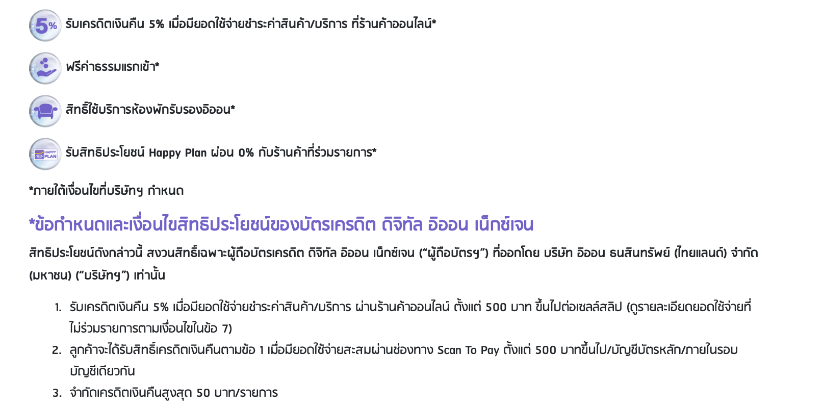 ข้อกำหนดและเงื่อนไขสิทธิประโยชน์ของบัตรเครดิต ดิจิทัล อิออน เน็กซ์เจน