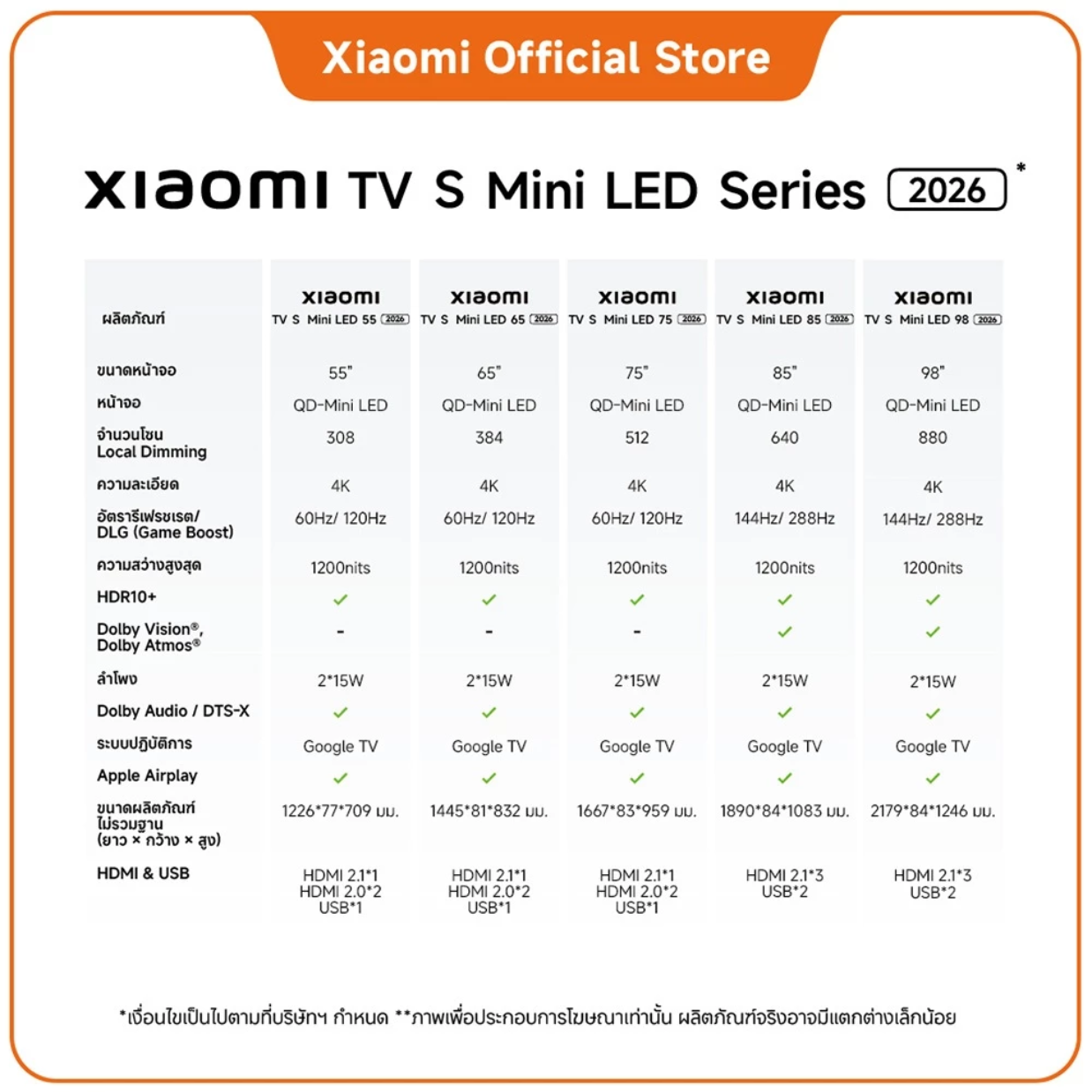 หลังจากที่ Xiaomi ทำตลาดทีวีเน้นความประหยัดมานาน ปี 2026 นี้เขาเอาจริงกับตลาดพรีเมียมด้วยซีรีส์ S Mini LED และ S Pro ครับ