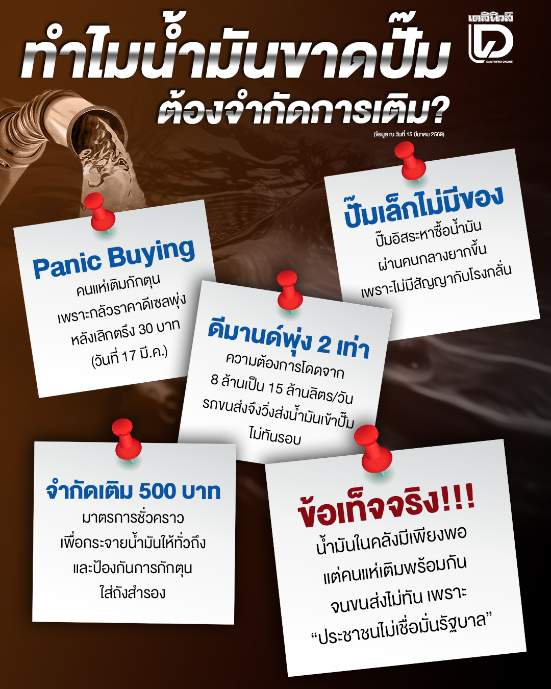 ถ้าเป็นอย่างงี้คนจะแห่กักตุนของนะ  กระแสข่าวขาดแคลน จริง หรือ ปั่นอ่ะ เพราะคนไทยไม่เชื่อมั่นในรัฐบาลไง อย่าให้ซ้ำรอย แมสก์ แอลกอฮอล์ ที่แพงมากในช่วงโควิด  เพี้ยนเซ็งเป็ดประเทศเราไม่ได้รับผลกระทบอย่างจังจากสงคราม ไม่ได้อยู่ในละแวกนั้นนี่คะ แต่จะวุ่นวายเพราะภายในกันเองนี่แหละภาครัฐต้องออกมาตรการที่เข้มแข็งยืนยันหนักแน่นว่าอย่ากักตุน มีเพียงพอ หรือหาซื้อใหม่ ปรามกระแสบ้าง ต้องทำให้คนไม่รู้สึกกลัวค่ะ พาพันรดน้ำต้นไม้