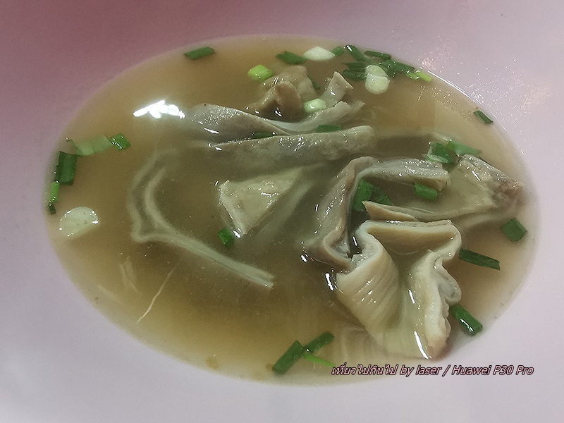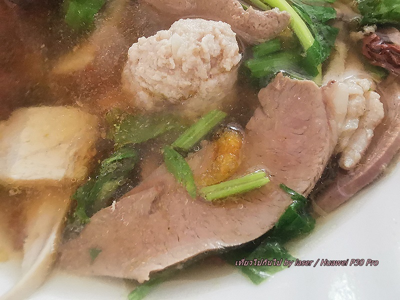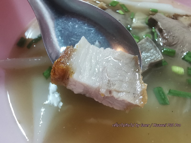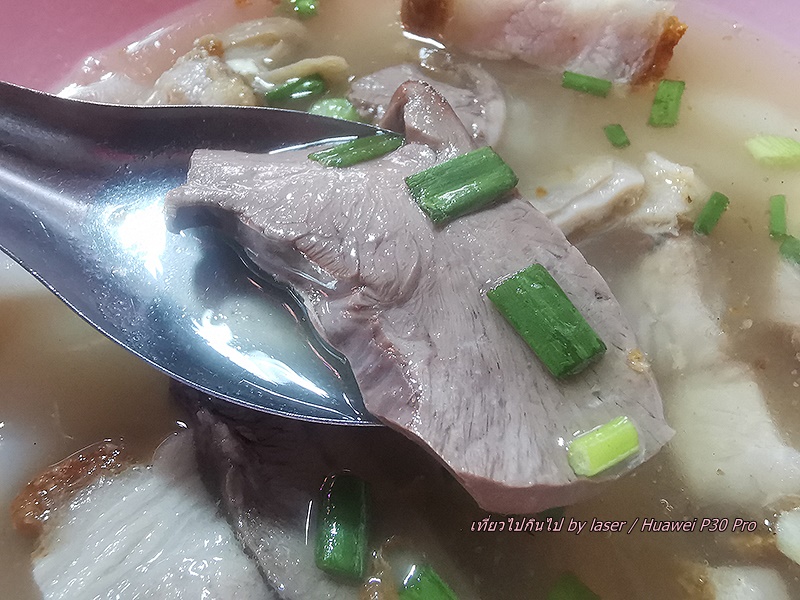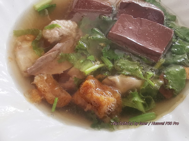 น้ำแกงดีไม่เผ็ดพริกไทยมาก เครื่องในสะอาดชิ้นพอดีคำ หมูกรอบดี ลูกชิ้นหมูสับเน้นกระเทียม