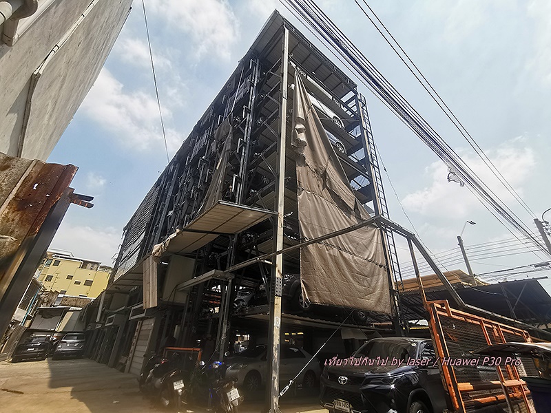 ผ่านที่จอดรถแบบชิงช้าสวรรค์ ตรอกนี้ทะลุออกถนนตะนาวข้างศาลเจ้าพ่อเสือ