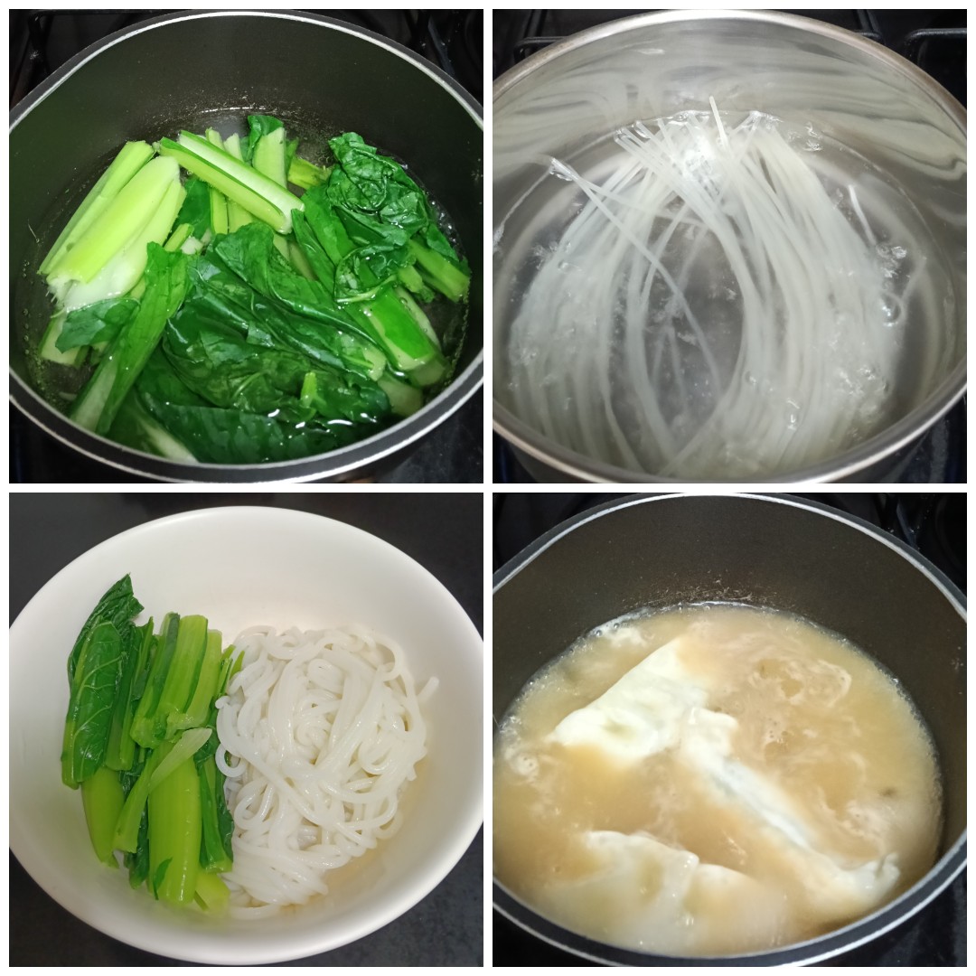 - ตั้งหม้อใส่น้ำ พอน้ำเดือดก็ใส่ซอสมิโซะซุปลงไป แล้วตามด้วยเกี๊ยว คนๆให้เข้ากัน สุกแล้วก็ปิดเตา เทใส่ชามที่เตรียมไว้