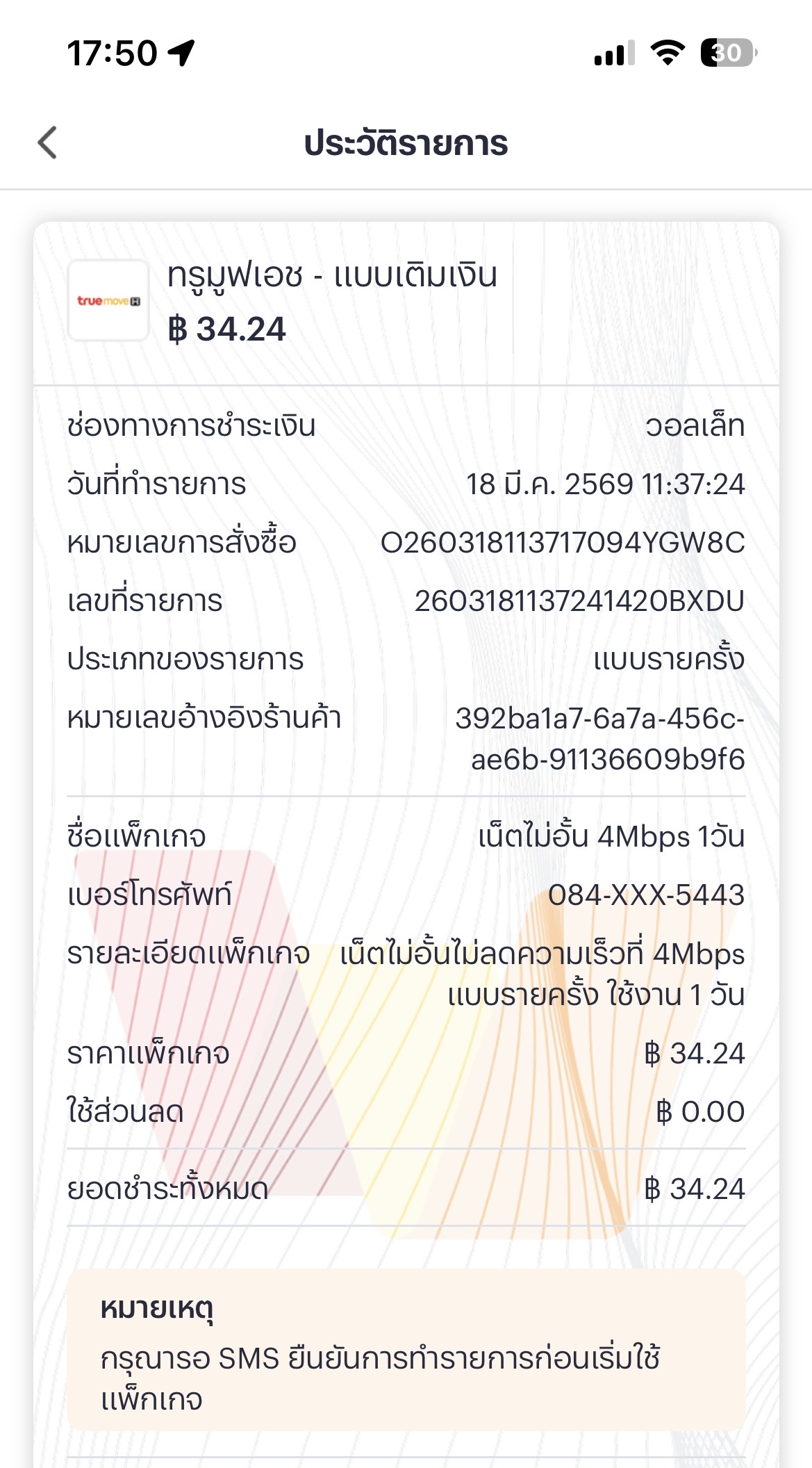 โดนทรูมันนี่หักตังแต่ยังใช้เน็ตไม่ได้