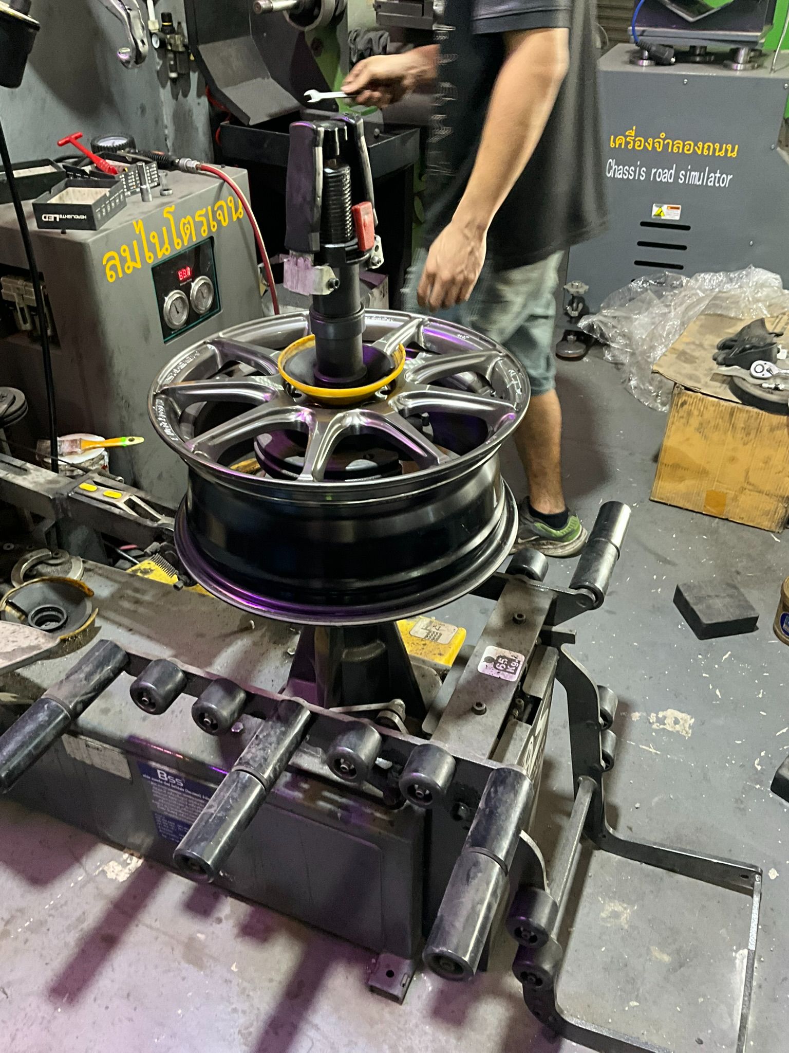 ว่าแล้วก็ ใส่ยางกลับ พร้อมจับถ่วงใหม่ ครับ