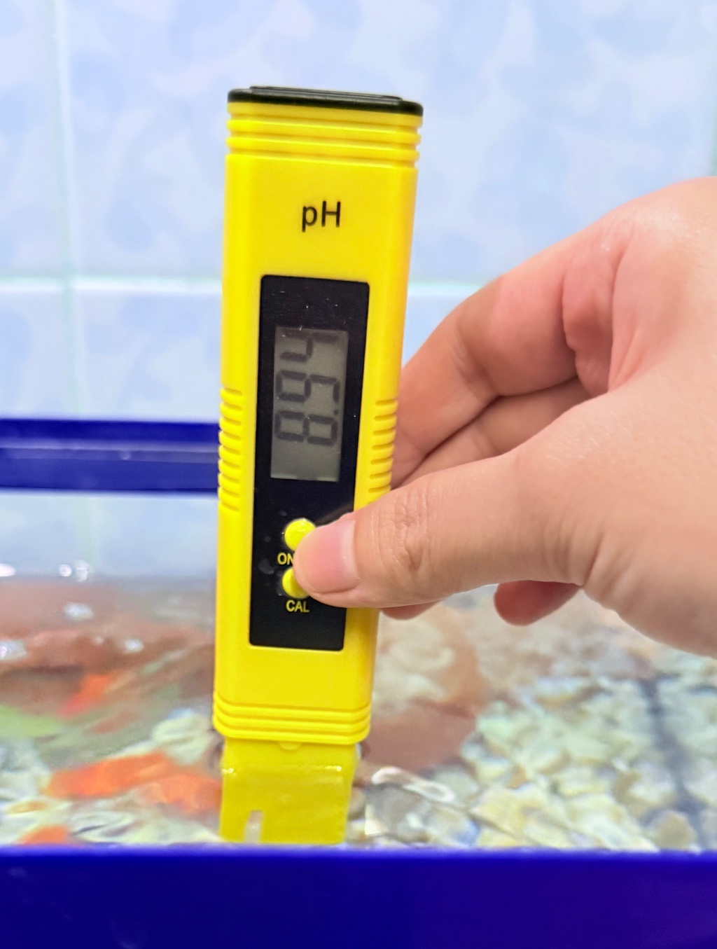 เพิ่งเปลี่ยนน้ำในตู้ปลาทองใหม่ไปค่ะวันนี้ ทำตามที่หลายคนแนะนำกัน ใช้น้ำประปาที่พักคลอรีนไว้ 3-4 วัน เติมน้ำยาลดคลอรีน น้ำยาจุลินทรีย์ปรับสภาพน้ำใส แต่พอลองใช้เครื่องเช็คค่า ph น้ำทีไร จะอยู่ที่ราวๆ 8.xx ตลอดเลย เช็คทั้งก่อนเติมน้ำยาลดคลอรีน และหลังเอาปลาลงตู้แล้ว ก็ได้ค่าอยู่ที่ 8 ตลอด ใจจริงเคยคิดอยากลองหยดน้ำส้มสายชูสักหยดเพื่อให้ค่า ph ลดลงมาเหลือ 7.xx ที่เหมาะสมกับปลาทอง แต่กลัวน้องๆ ช็อคน้ำแล้วตุยไปก่อนค่ะ เลยไม่แน่ใจว่าถ้าน้ำมีความเป็นด่างไปหน่อย จะมีผลระยะยาวอะไรกับน้องไหม หรือมีวิธีแก้ให้ค่า ph มันสมดุลเหมาะกับน้องๆ ไหม