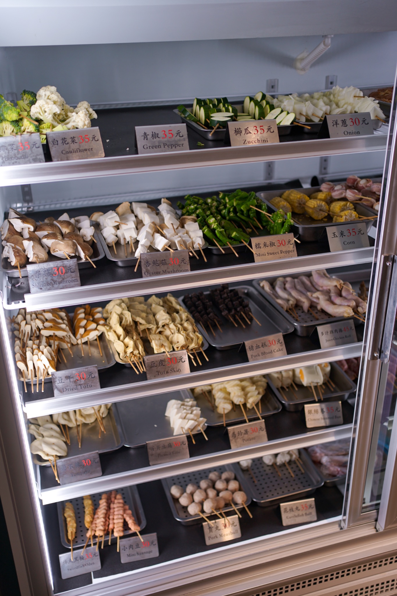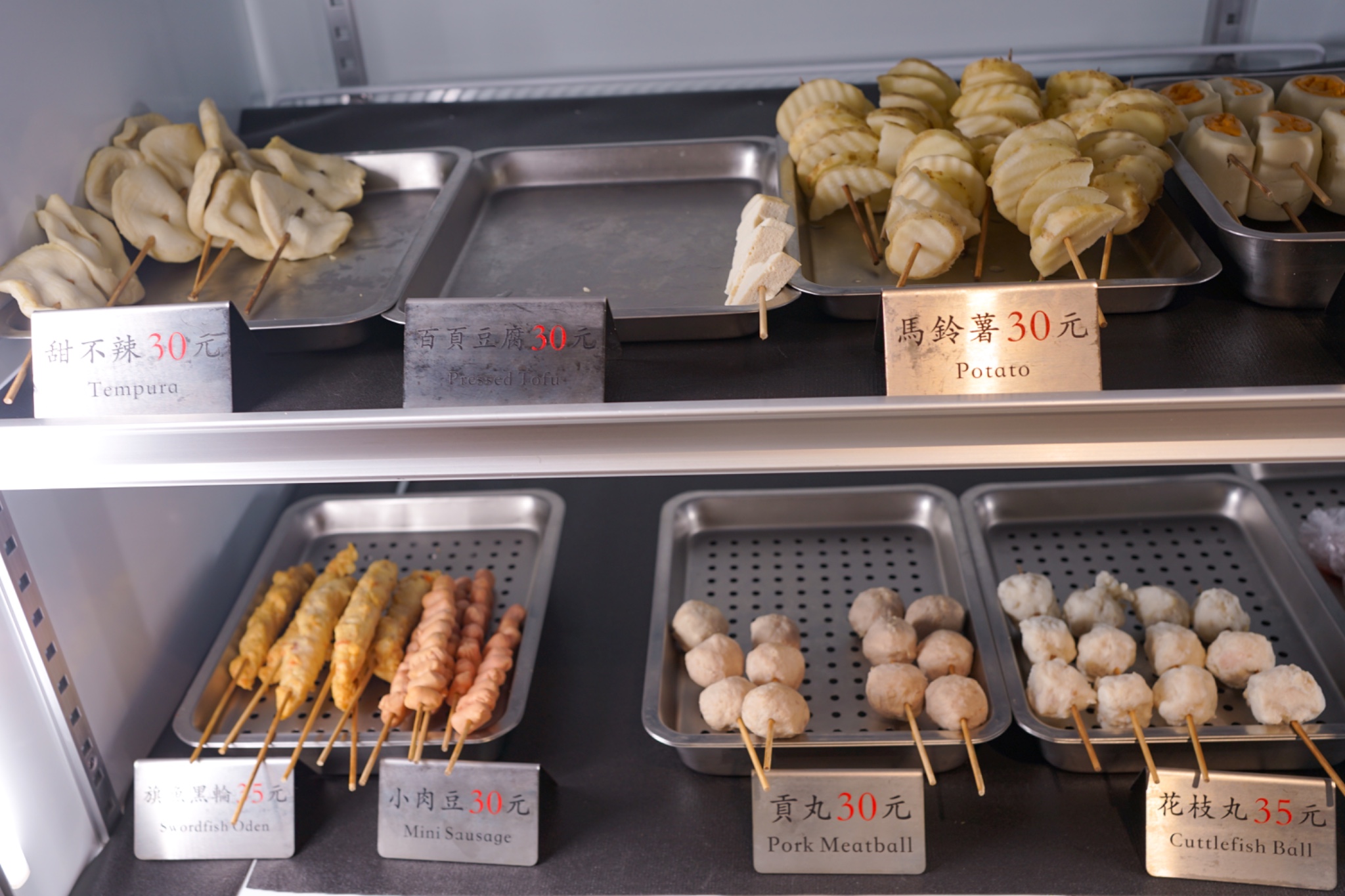 🍢 ที่ร้านมีเมนูให้เลือกทั้ง หมู ไก่ เนื้อ ลูกชิ้น ฟองเต้าหู้ ผัก เราสามารถหยิบอาหาร แล้วไปจ่ายตัง หยิบแก้ว ละนั่งรอของมาเสิร์ฟที่โต๊ะได้เลย ที่นี่ยังมีผงโรยต่างๆ เอาไว้โรยใส่ด้วย ส่วนตัวพู่ชอบอันที่เป็นพริก 🌶️