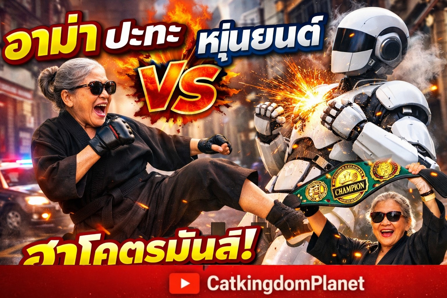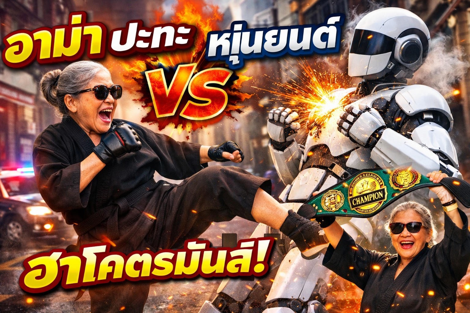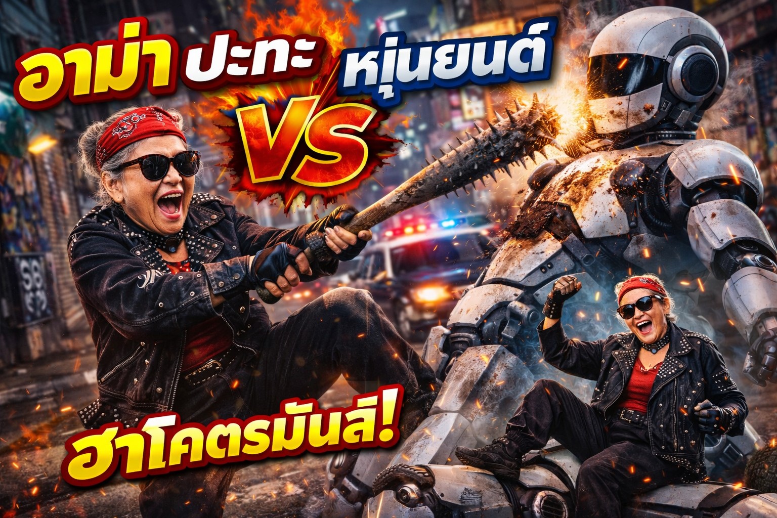 🤖😹“ไอ้หุ่นยนต์โรคจิต! มันตามอั้ว!” อาม่า vs. หุ่นยนต์ สังเวียนการต่อสู้บนถนน Street Punk 🐾