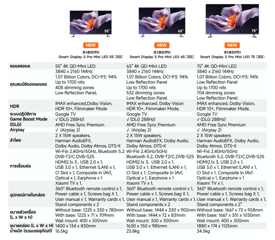 Xiaomi TV S Pro Mini LED 2026 คือก้าวกระโดดของ Xiaomi ในตลาดทีวีไทย