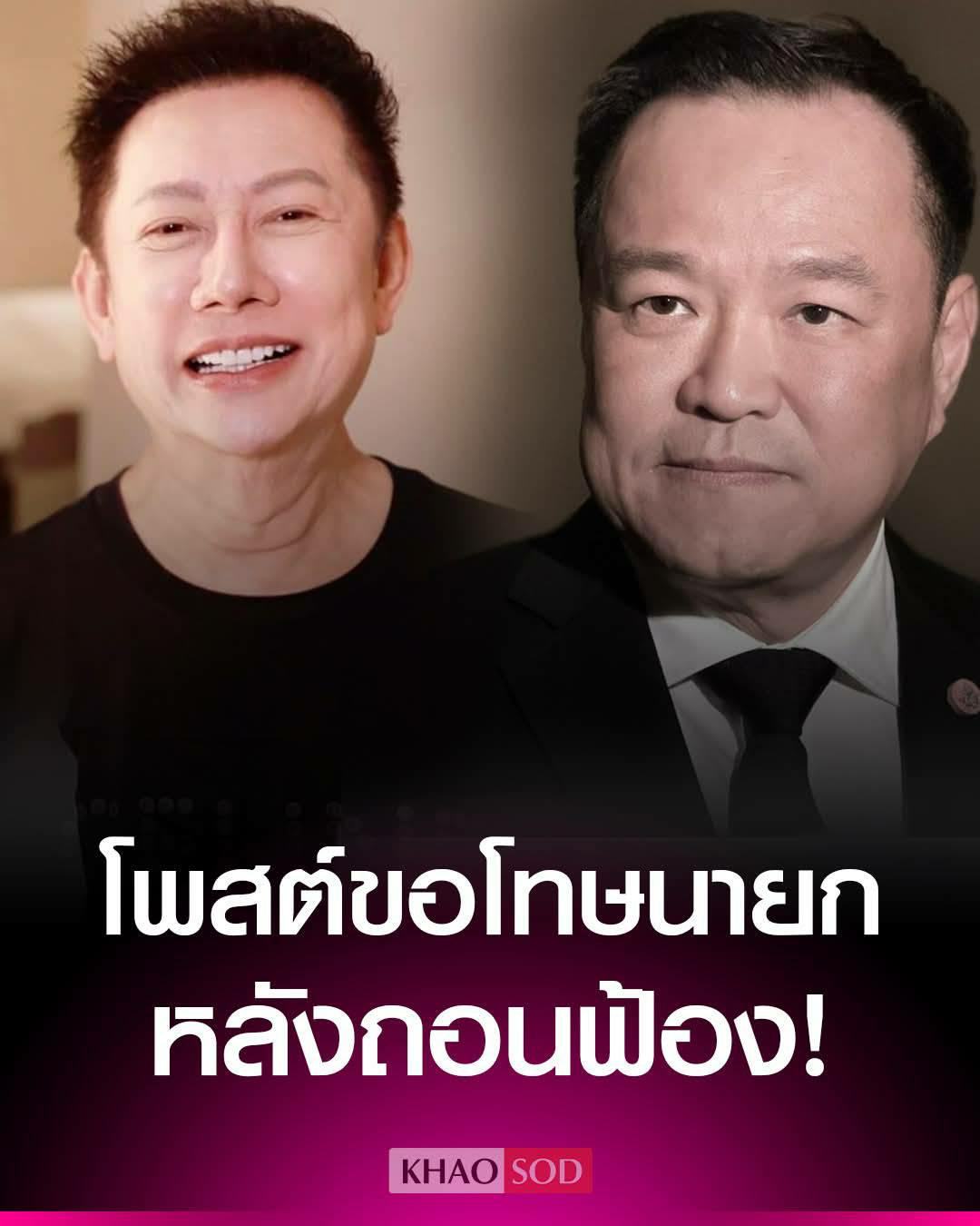 บอสณวัฒน์ โพสต์ข้อความขอโทษ นายกอนุทิน - ขอบคุณที่ถอนฟ้อง จบคดีหมิ่นประมาทฯ