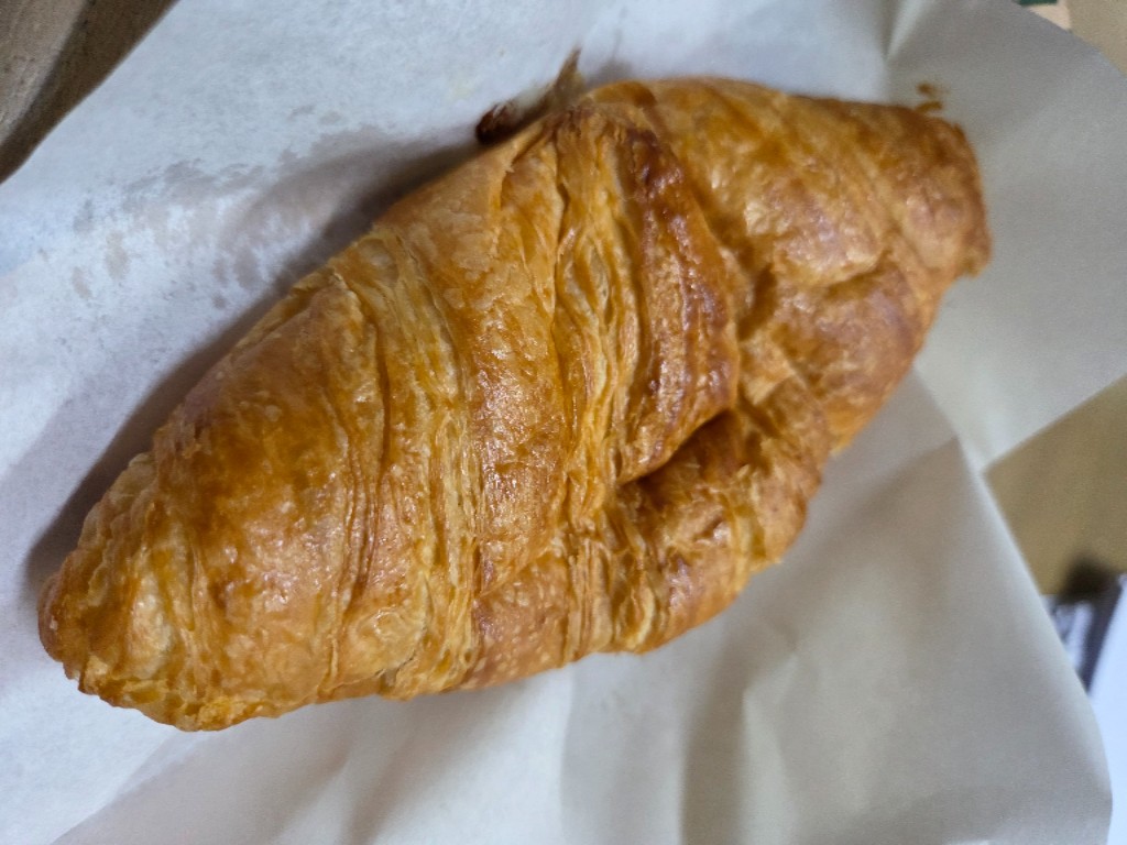 ...พอดีมีคูปองจากแอป blue+ เหลืออยู่ ซื้อกาแฟ 1 แถม เบเกอรี่ 1 ชิ้น(ไม่เกิน 55บ.) เช้านี้เลยเข้าไปจัดมา เลือก ครัวซองต์แฮมชีส เป็นมื้อเช้าเบาๆ พอสั่ง พนง.จะแจ้งใช้เวลารออุ่น 3นาที (แต่จริงๆนานกว่านั้นเพราะคิวเยอะ) พอได้มา เอามากินที่ทำงาน ยังหอม อุ่น กรอบ อยู่เลย ถือว่าโอเคมาก โดยเฉพาะได้แลกมาฟรี...