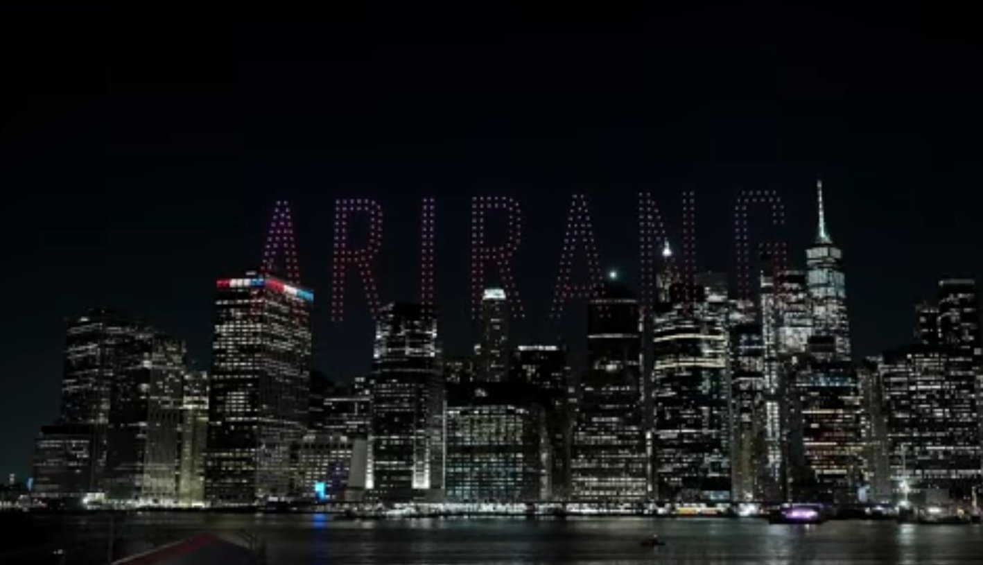 เล่นใหญ่ประกาศศักดา...👀 BTS จัดแสดงโดรนที่ NEW YORK ประกาศอัลบั้ม ARIRANG ที่จะปล่อยในวันพรุ่งนี้