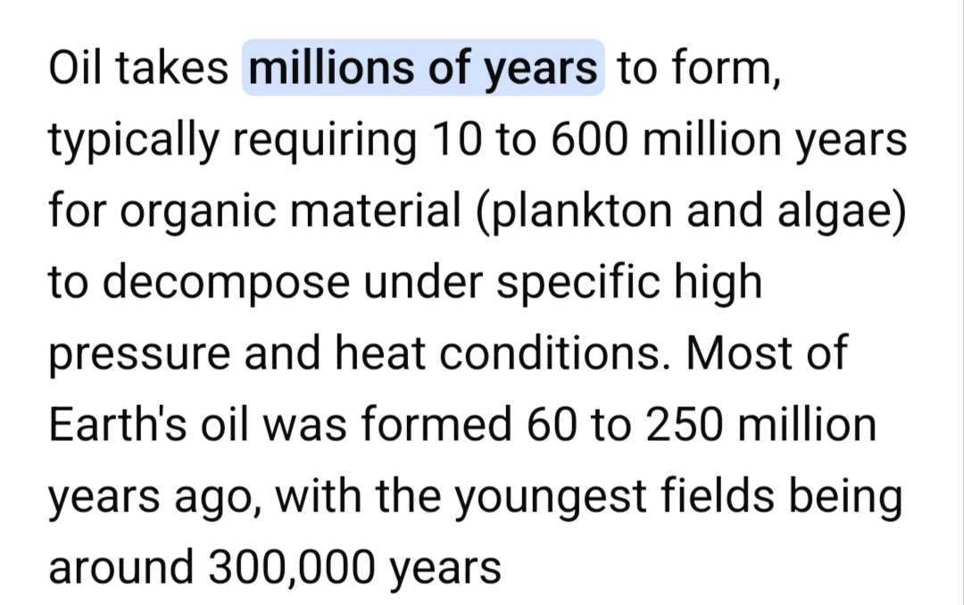ต้องใช้เวลา 10-600ล้านปี กว่าจะย่อยซาก organic จนกลายสภาพเป็นน้ำมันดิบ