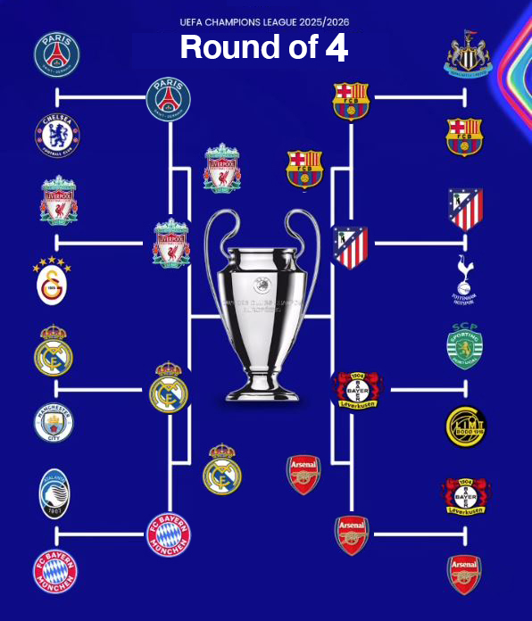ยูฟ่า แชมเปียนส์ลีกรอบ 16 ทีมสุดท้ายของฤดูกาล 2025/2026 ได้บทสรุปว่า ทีมอังกฤษซึ่งเข้ามา 6 ทีมเต็มจนสามารถคุยโวโอ้อวดข่มลีกอื่นได้ แต่ปรากฎว่าตอนนี้เหลือรอดเพียงแค่ 2 ทีมซึ่งก็คือ เตะมุมปืนโต (อาร์เ