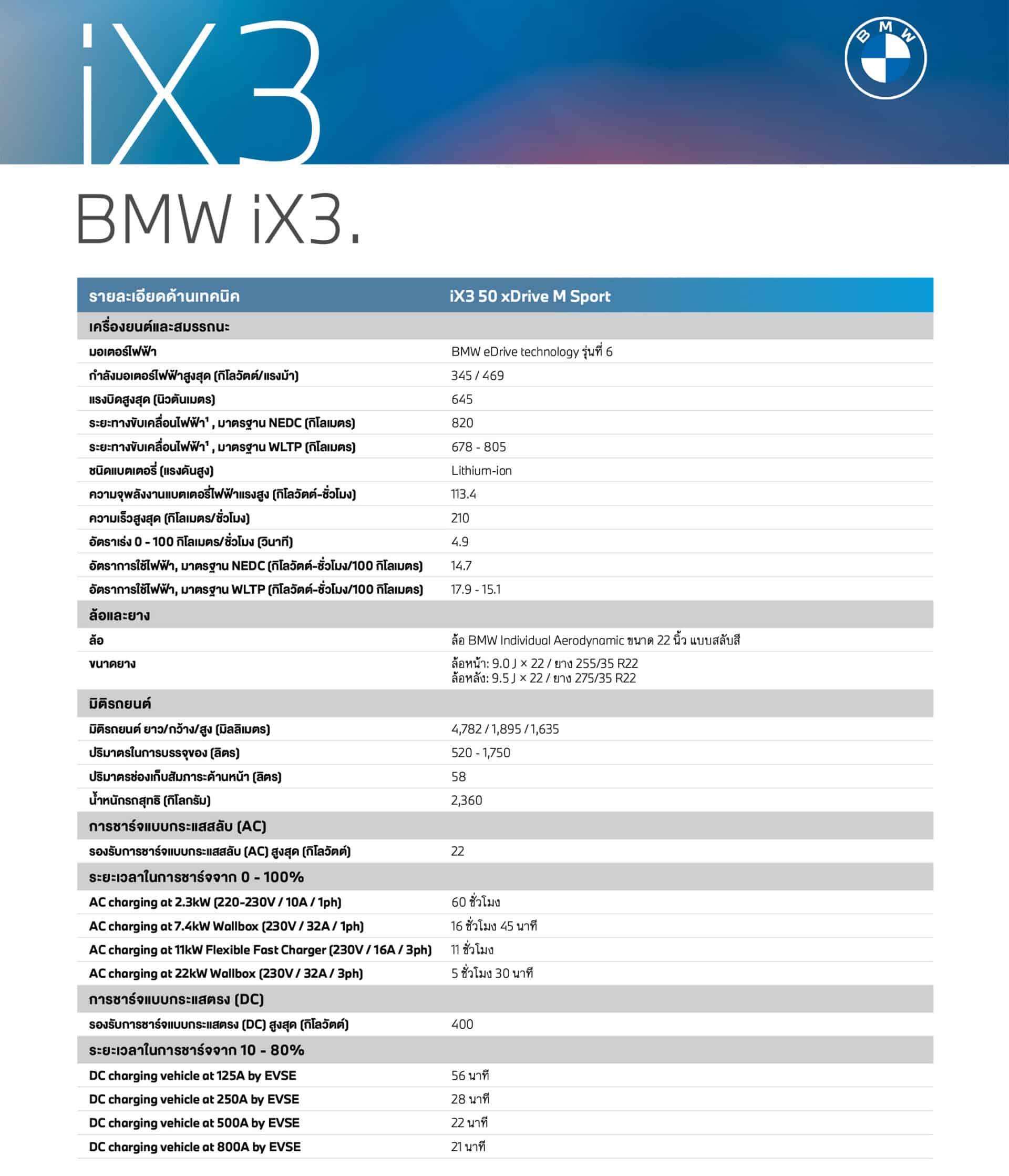 - iX3 Neue Klasse : 4,782 x 1,895 x 1,635 มม. | ฐานล้อ 2,897 มม.