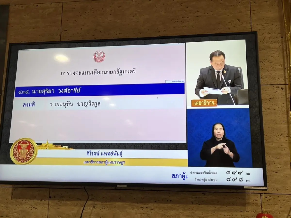 'งูเห่าส้ม' โผล่! 'สุริยา' สส.อุดรฯ ปชน. โหวต 'อนุทิน' นายกฯ