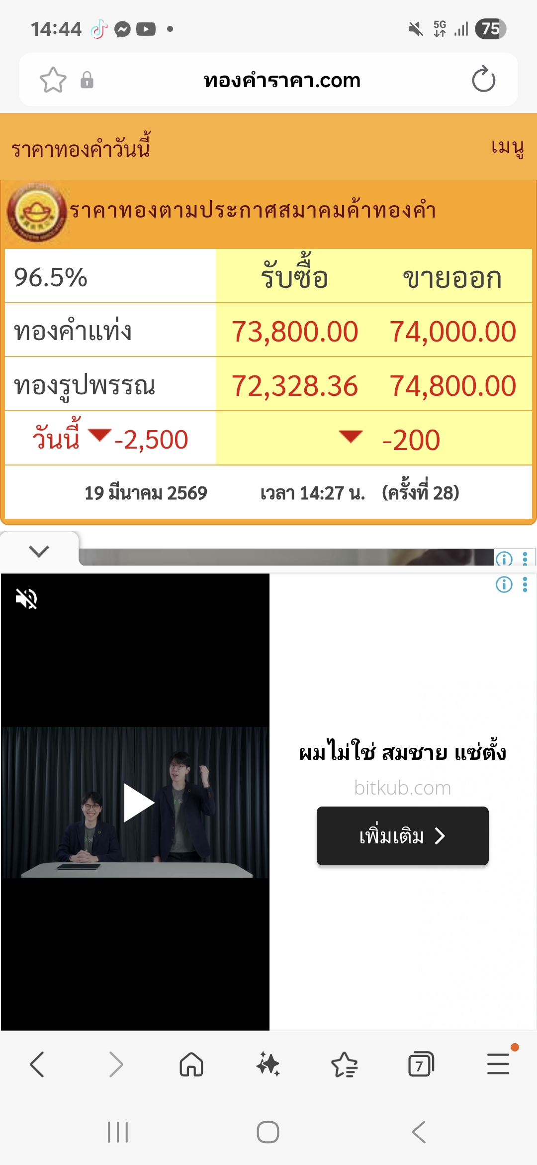 พุธมาตามสัญญา ท้าต่อยราหู หน้าปากซอย ทองลงวูป จาก 76,500 บาท เหลือ 75.000 บาท เมื่อเช้านี้
