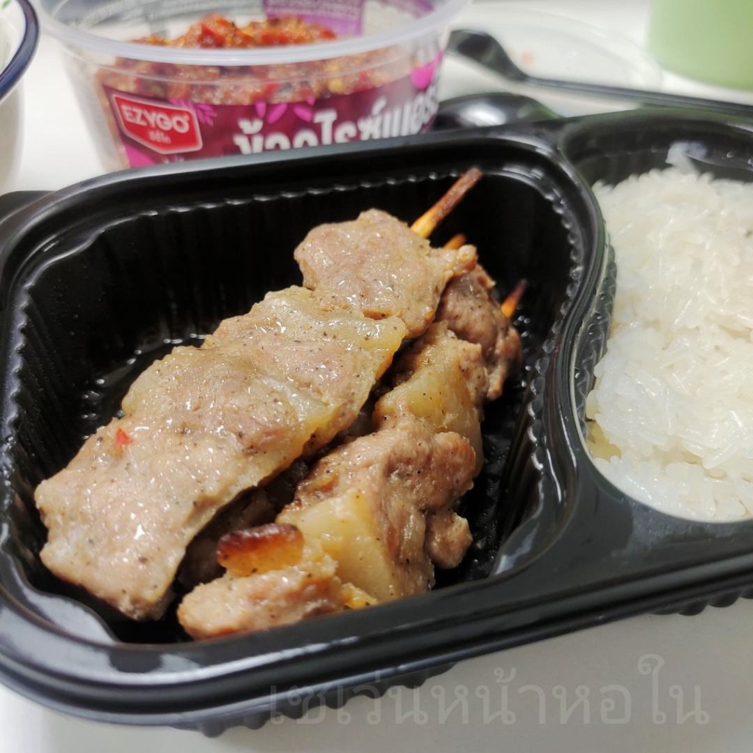 ข้าวเหนียวหมูปิ้ง 7-11 กล่องละ45บาท มีหมูปิ้ง3ไม้ พร้อมข้าวเหนียวนึ่งนุ่มๆ