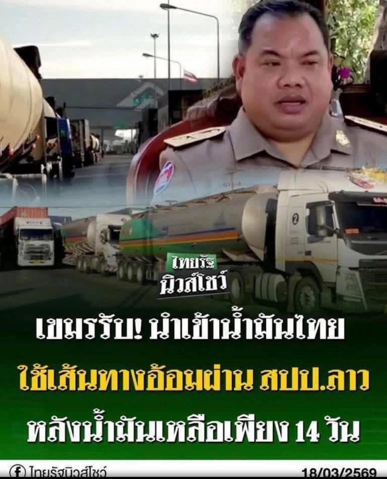 กัมพูชาวิกฤตหนัก! น้ำมันสำรองเหลือเพียง 14 วัน ผู้ว่าฯ สตึงเต็งรับต้องนำเข้าจากไทยผ่านลาวเพื่อความรวดเร็ว . 18 มีนาคม 2569 สถานการณ์ขาดแคลนพลังงานในกัมพูชาส่อเค้าวิกฤตหนัก หลังนายสาร์ โสพุทรา ผู้ว