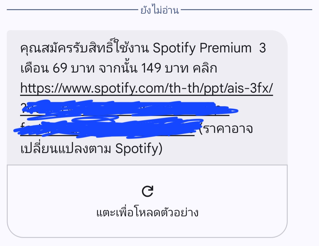 มีข้อความ โปรspotify จาก AIS พอกดสมัครเสียเงินแล้วบอกใช้ไม่ได้