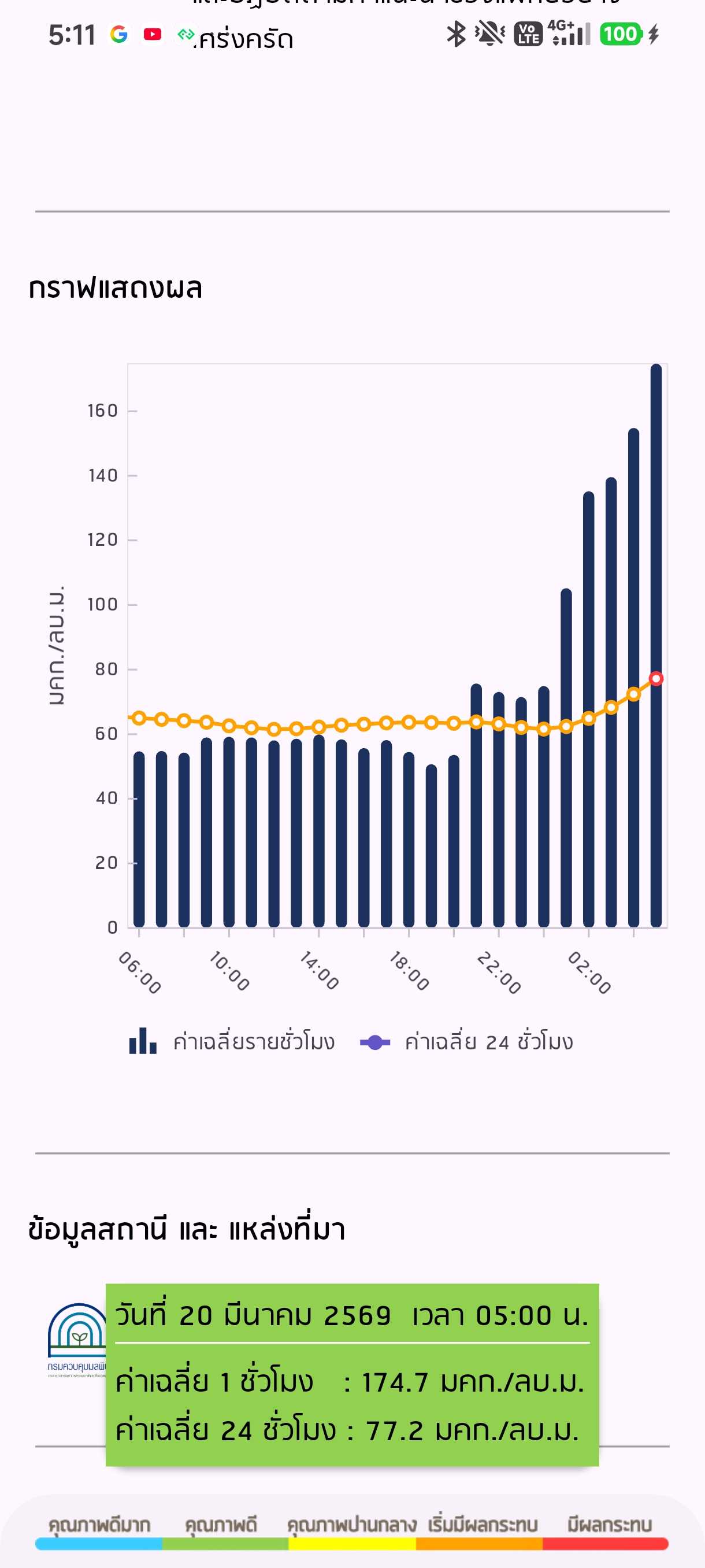 ​เช้านี้กราฟฝุ่นทำเอาตกใจมาก เพราะพุ่งสูงแบบทำลายล้างทั้งแบบ "รายชั่วโมง" และ "สะสม 24 ชั่วโมง" ครับ: