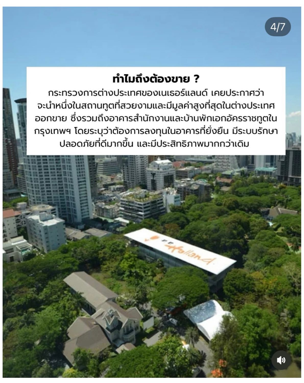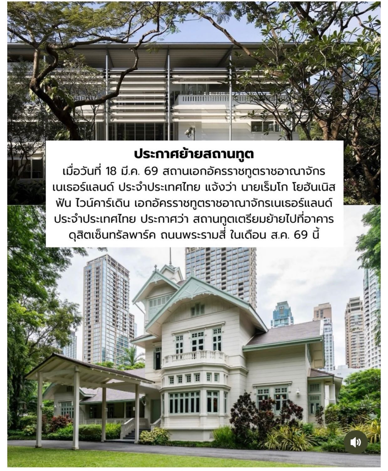 • สาเหตุการขาย: รัฐบาลเนเธอร์แลนด์ตัดสินใจขายเพื่อปรับงบประมาณ และเตรียมย้ายที่ทำการสถานทูตไปยังโครงการ Dusit Central Park (ตรงหัวมุมถนนสีลม-พระราม 4) ในช่วงเดือนสิงหาคม 2569 นี้