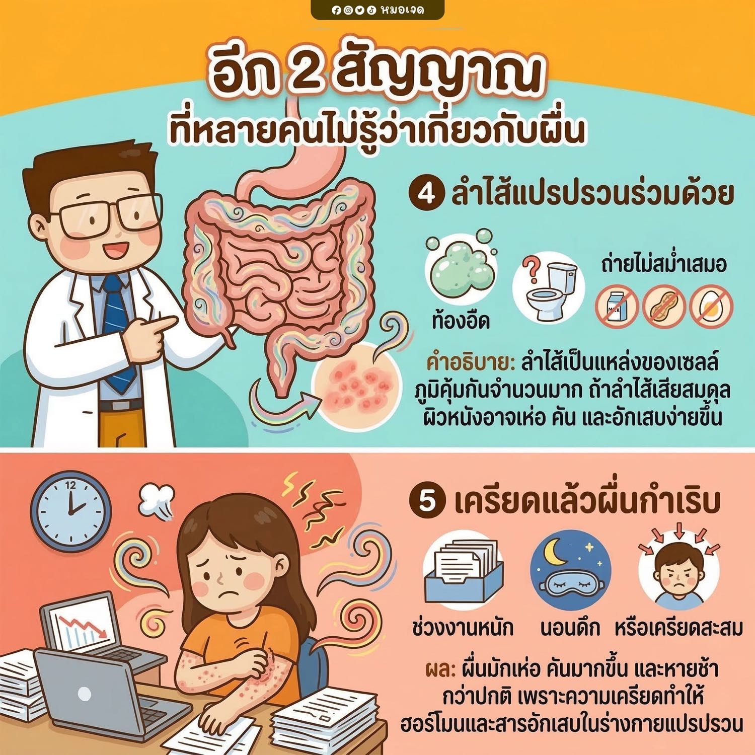 5️⃣ เครียดแล้วผื่นกำเริบชัดเจน
